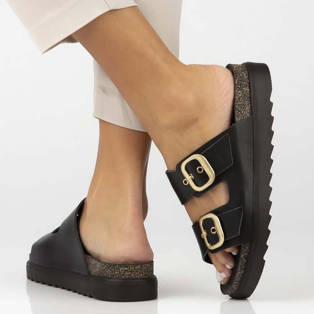 Leather flip-flops Yokono TUNEZ-130 VAQ NEGRO black