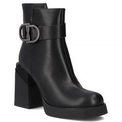 Skórzane botki na platformie Filippo DBT7421/25 BK czarne
