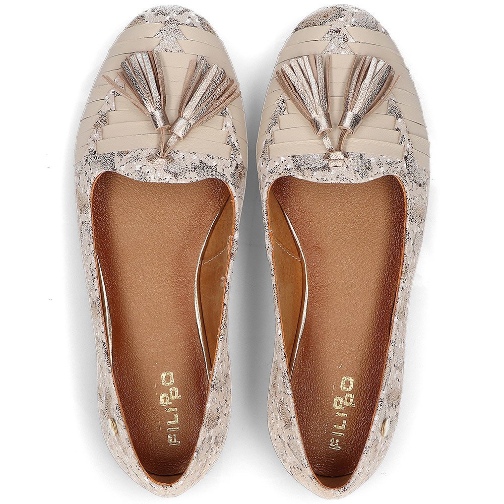- Skórzane baleriny Filippo 04016 beżowe złote