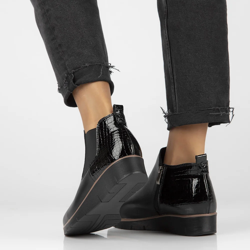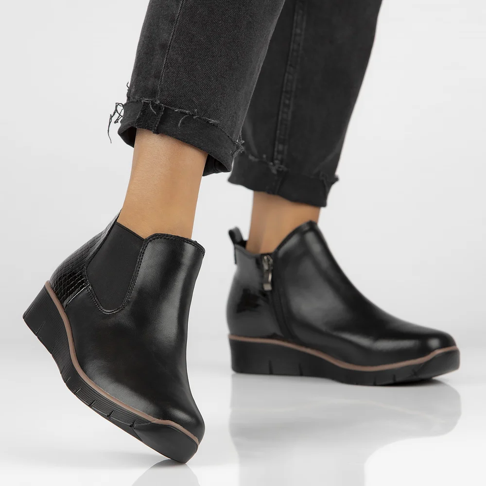 Skórzane botki na koturnie Filippo DBT4706/23 BK czarne