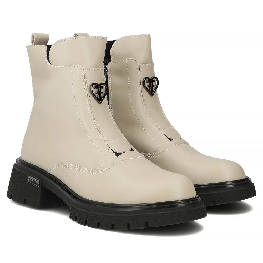 Skórzane botki na obcasie Filippo DBT7148/25 BE beżowe