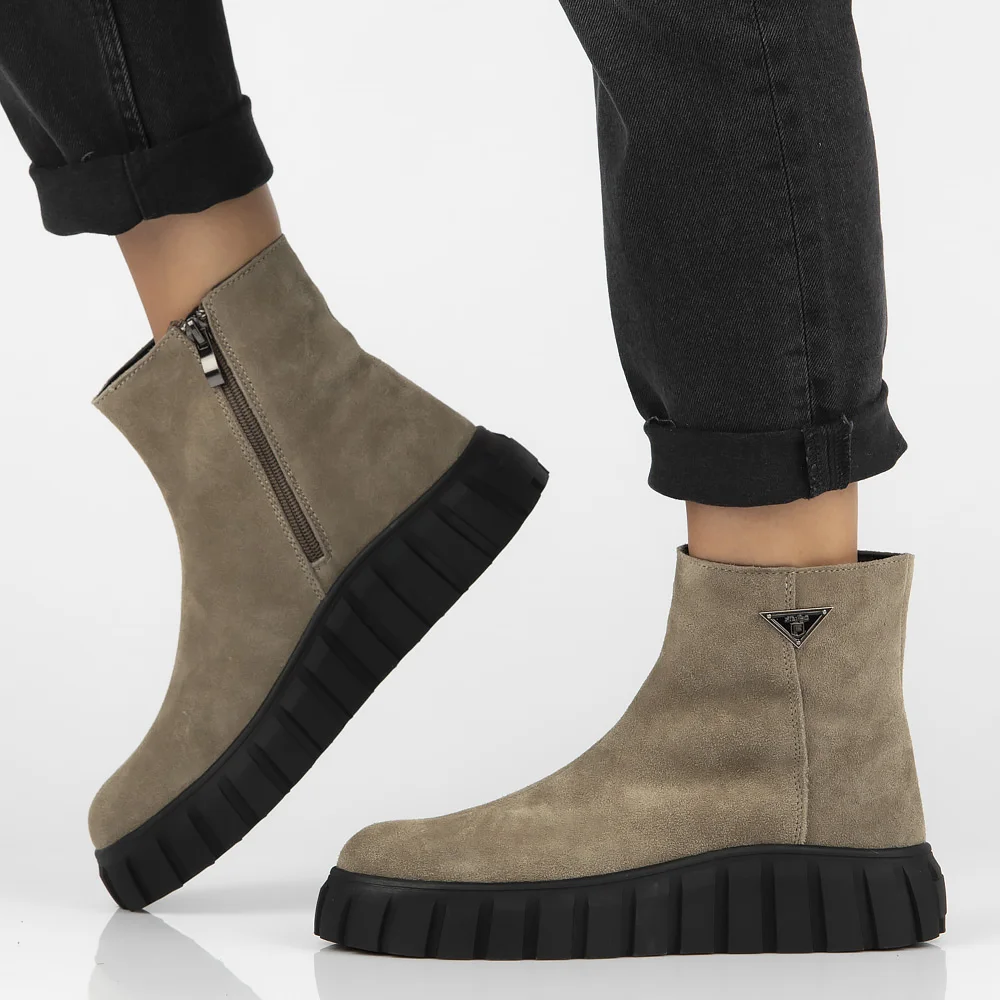 Skórzane botki na platformie Filippo DBT6301/25 TP taupe