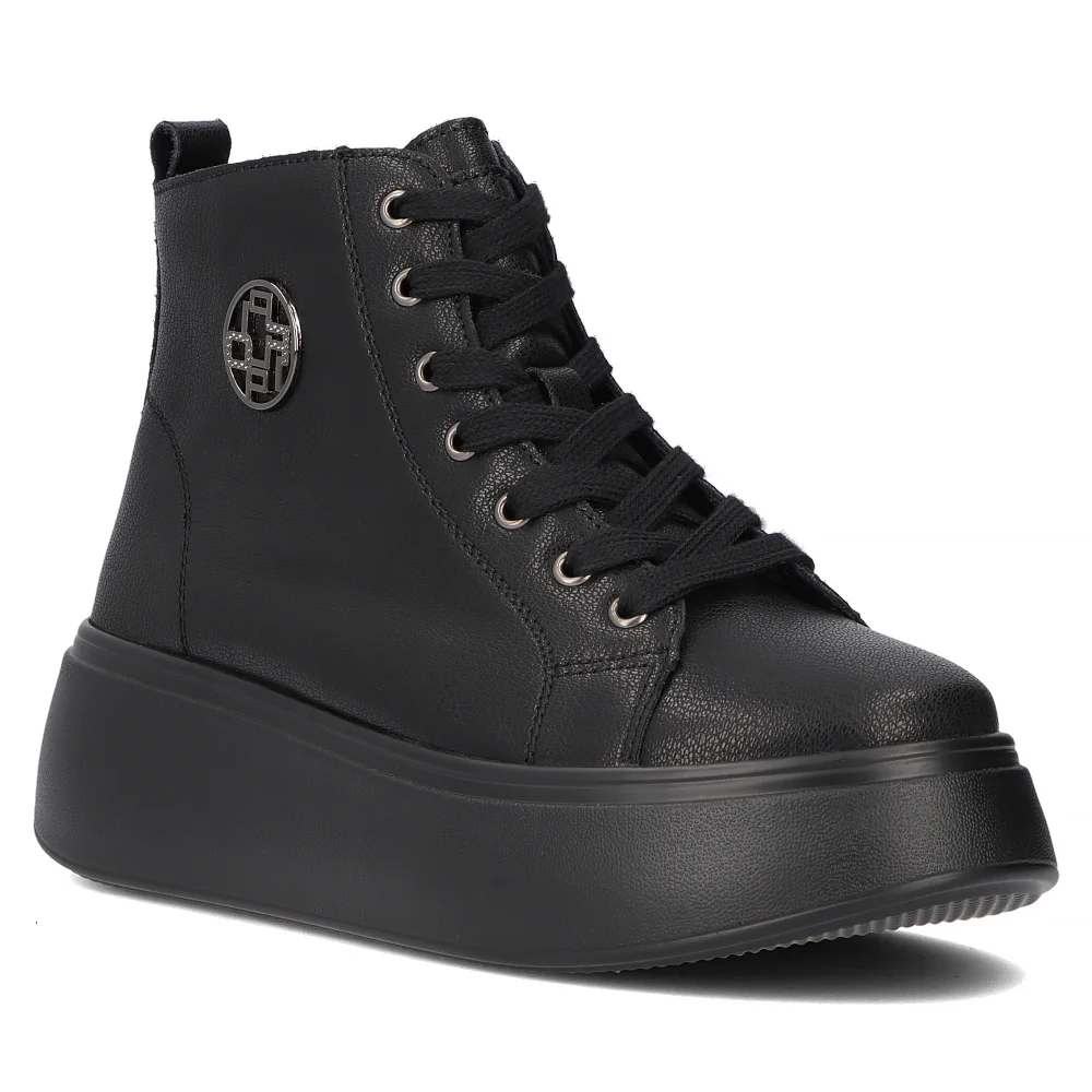 Skórzane botki na platformie Filippo DBT6338/24 BK czarne