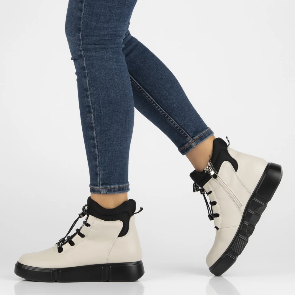 Skórzane botki na platformie Filippo DBT6532/25 BE beżowe