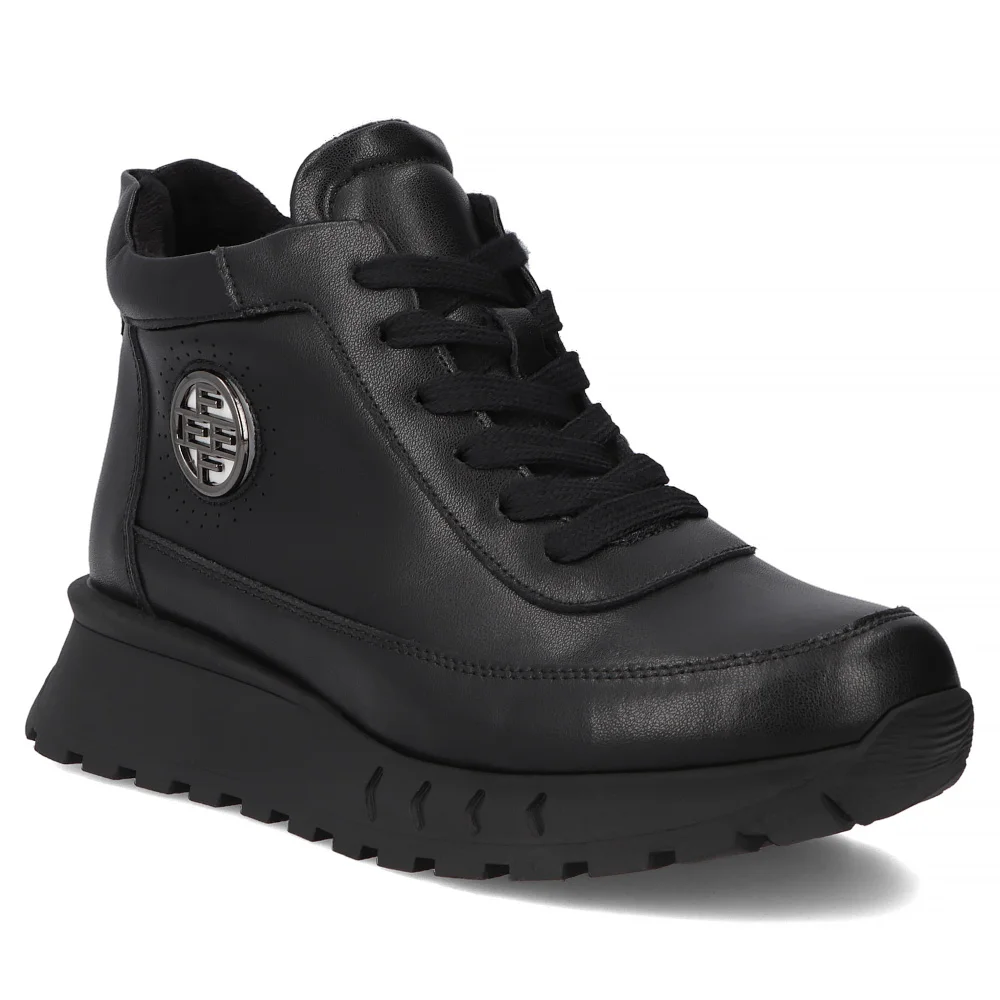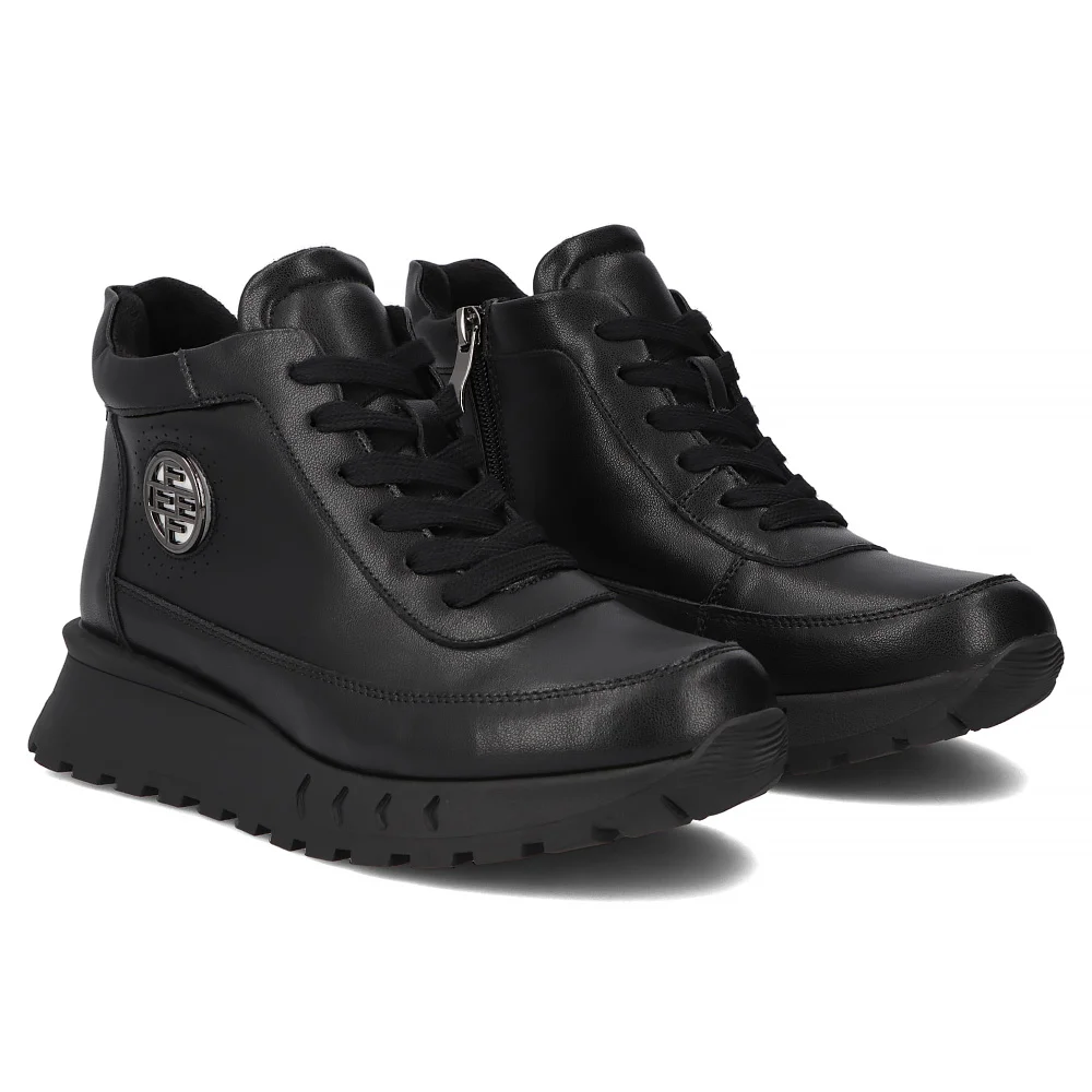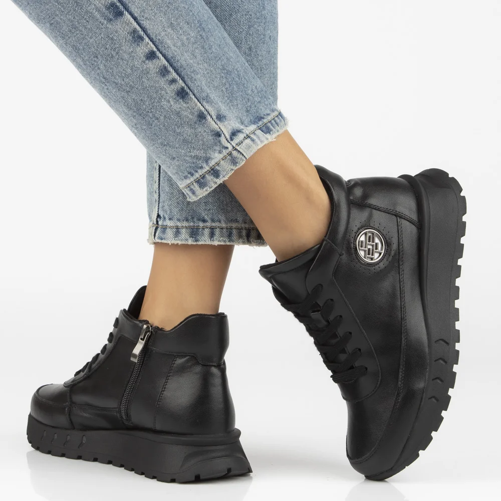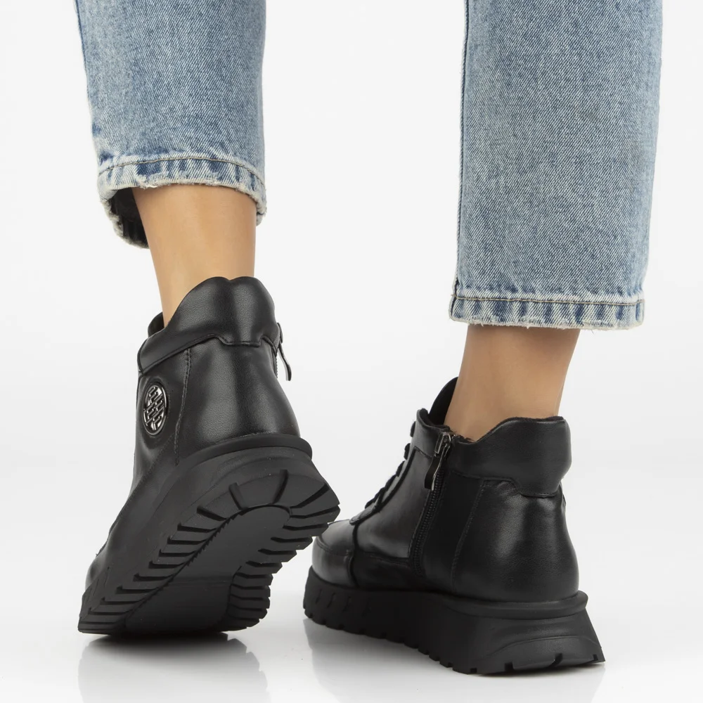 Skórzane botki na platformie Filippo DBT7145/25 BK czarne