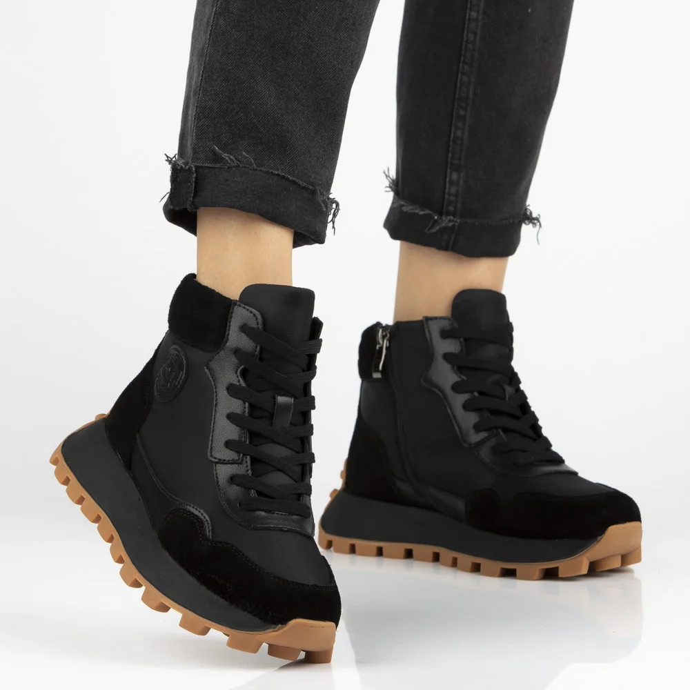 Skórzane botki na platformie Filippo DBT7158/25 BK czarne