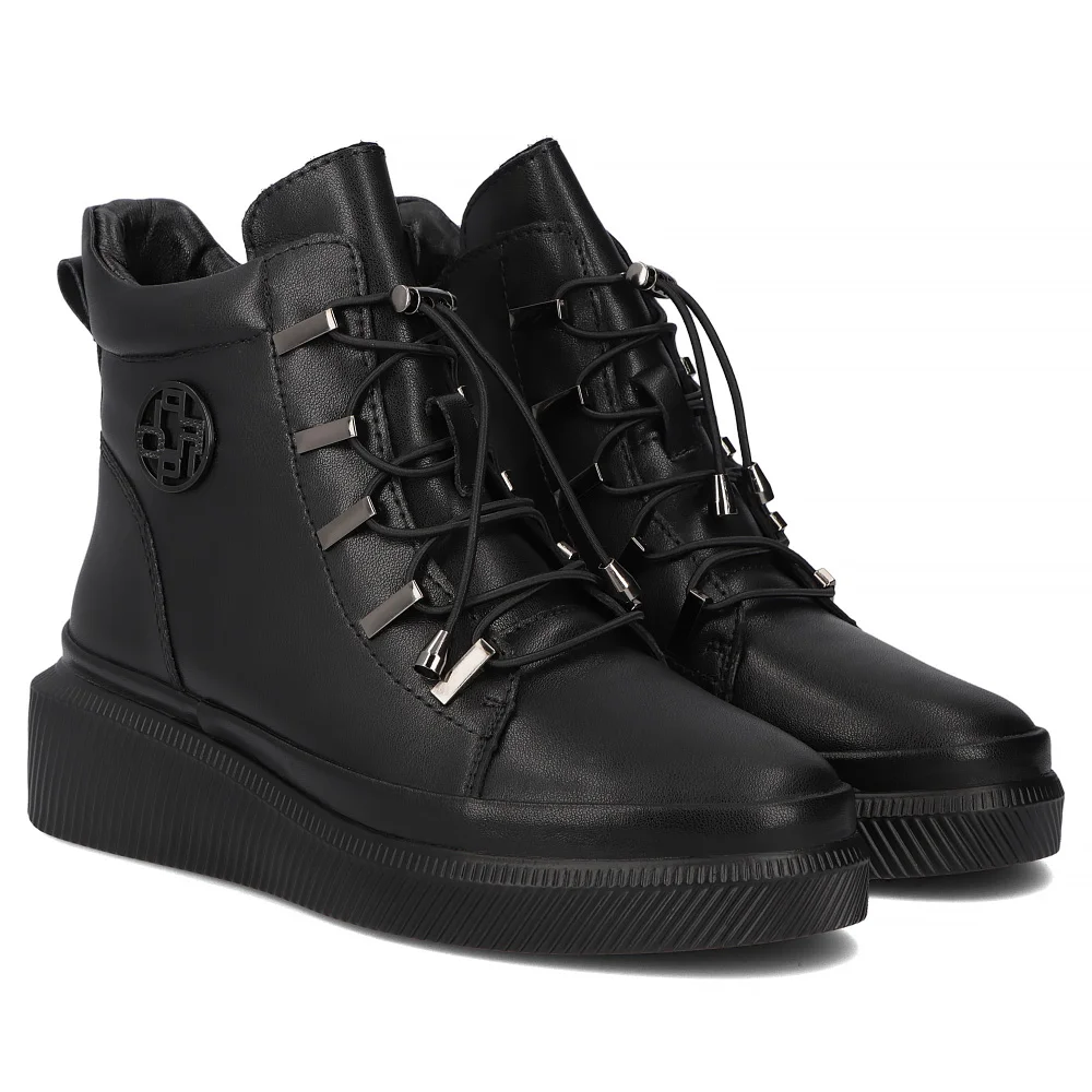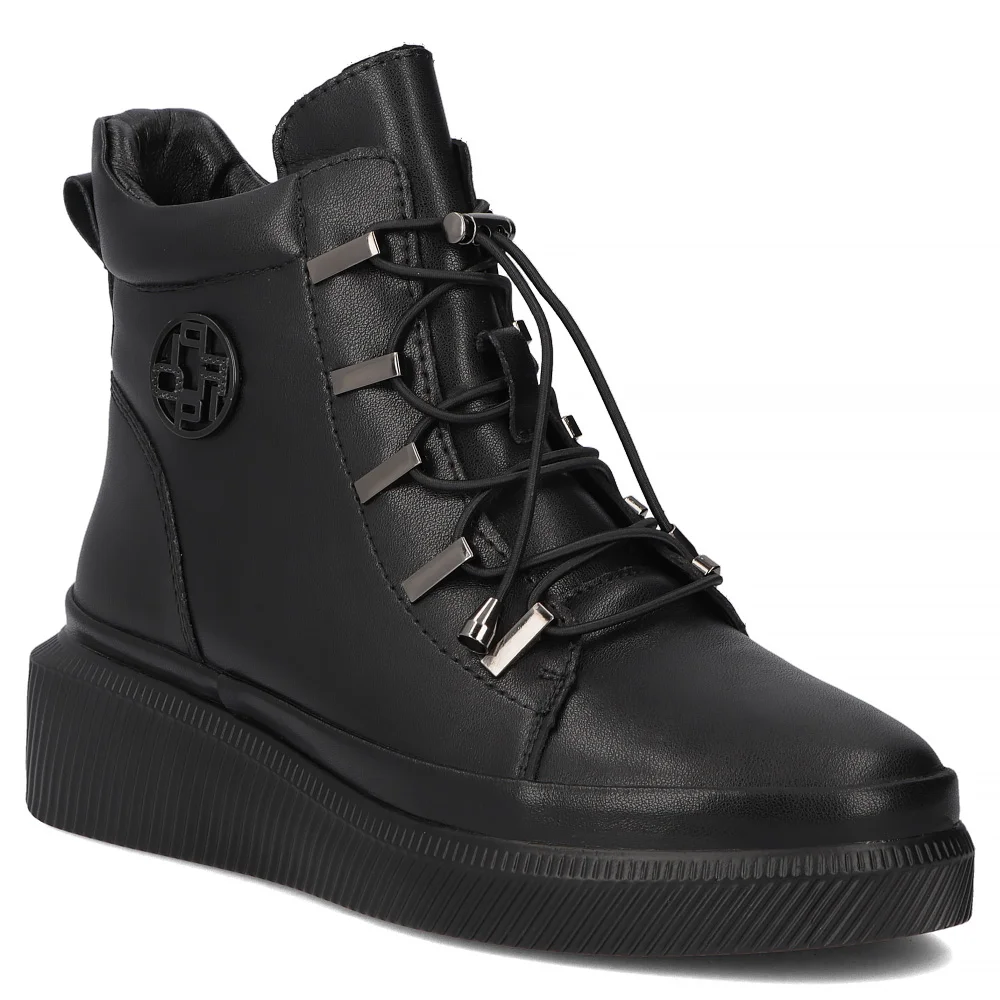 Skórzane botki na platformie Filippo DBT7416/25 BK czarne