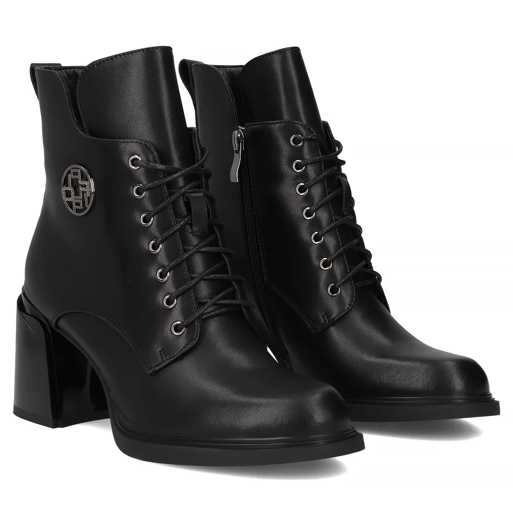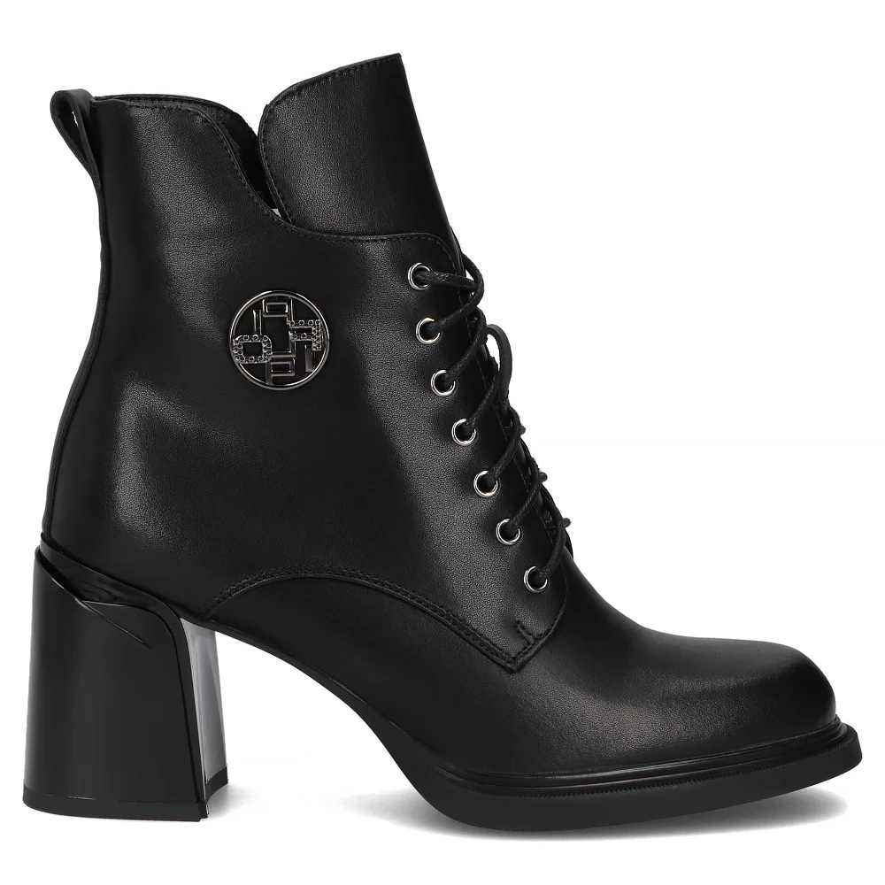 Skórzane botki na słupku Filippo DBT7320/25 BK czarne