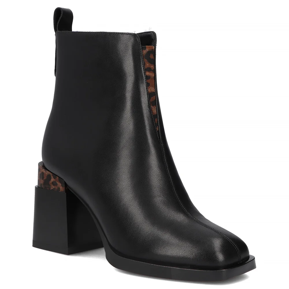 Skórzane botki na słupku Filippo DBT7353/25 BK czarne