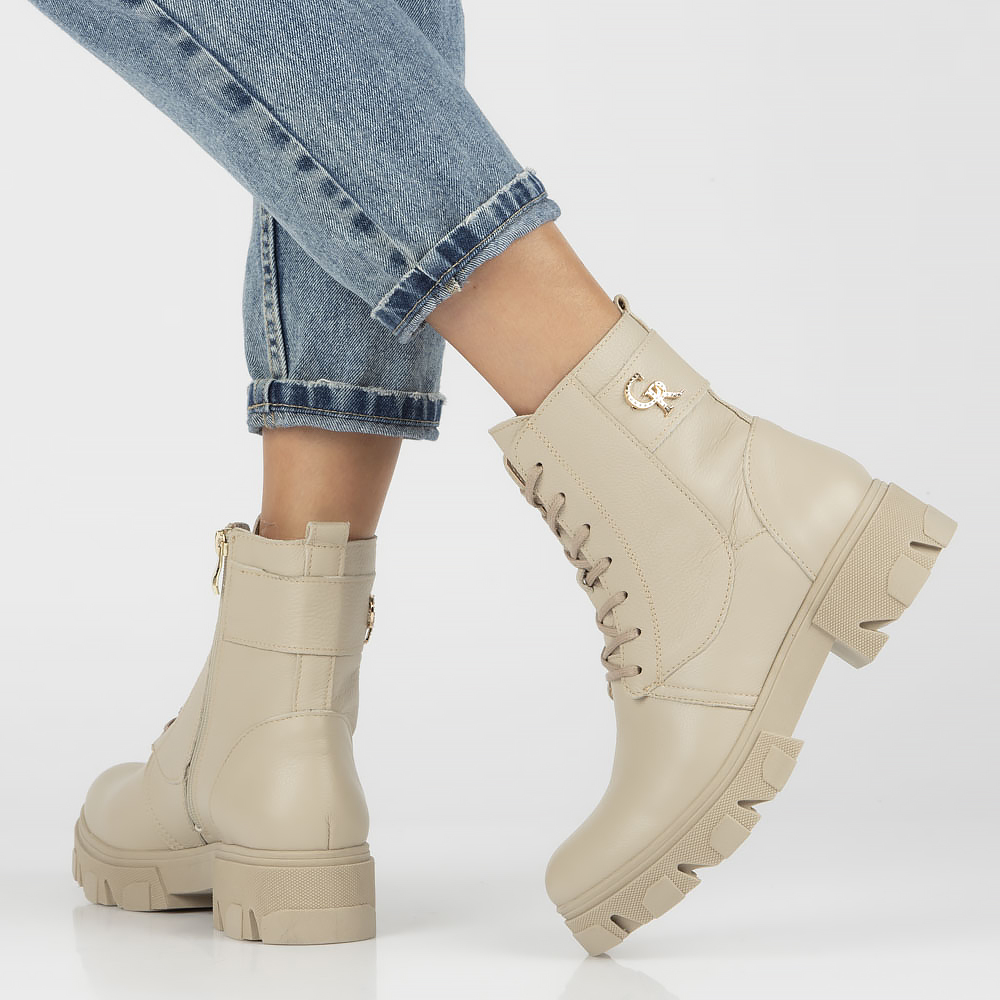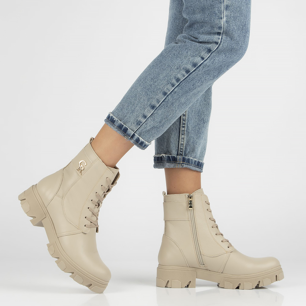 Skórzane botki typu workery Filippo 231 beżowe