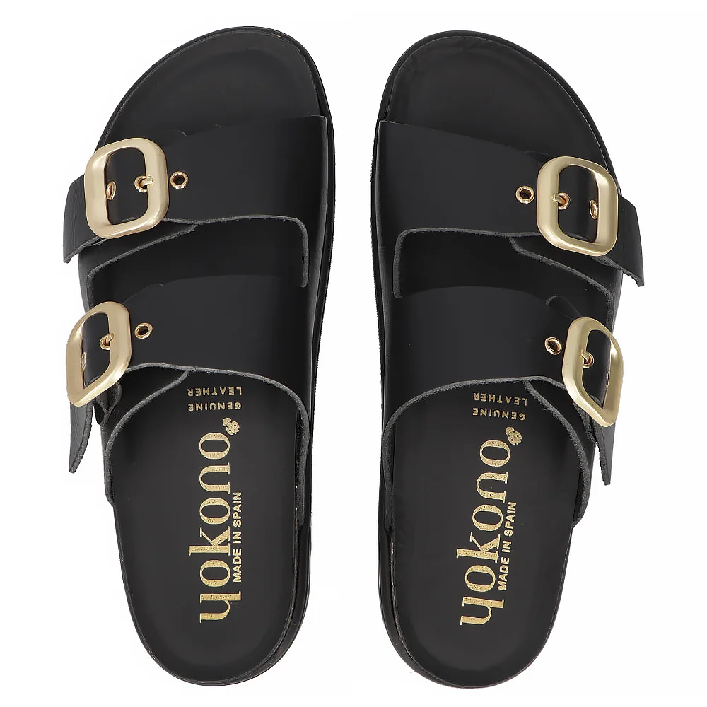 Skórzane klapki Yokono TUNEZ-130 VAQ NEGRO czarne