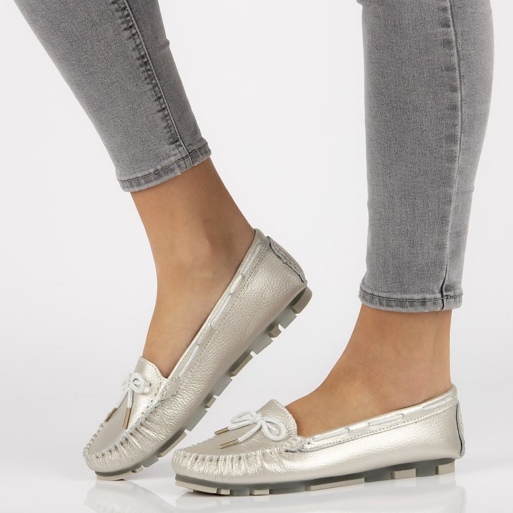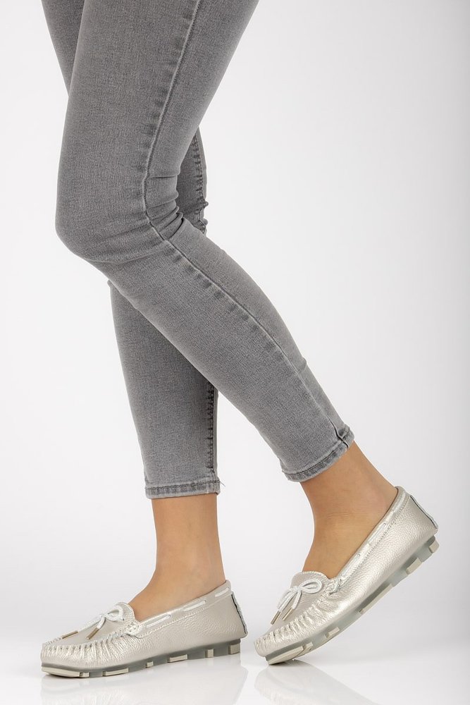 - Skórzane mokasyny Filippo DP1203/20 SI srebrne