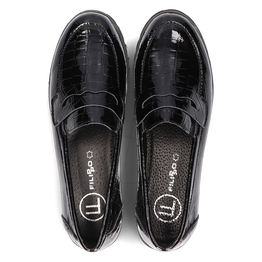 - Skórzane mokasyny Filippo DP3172/21 BK czarne