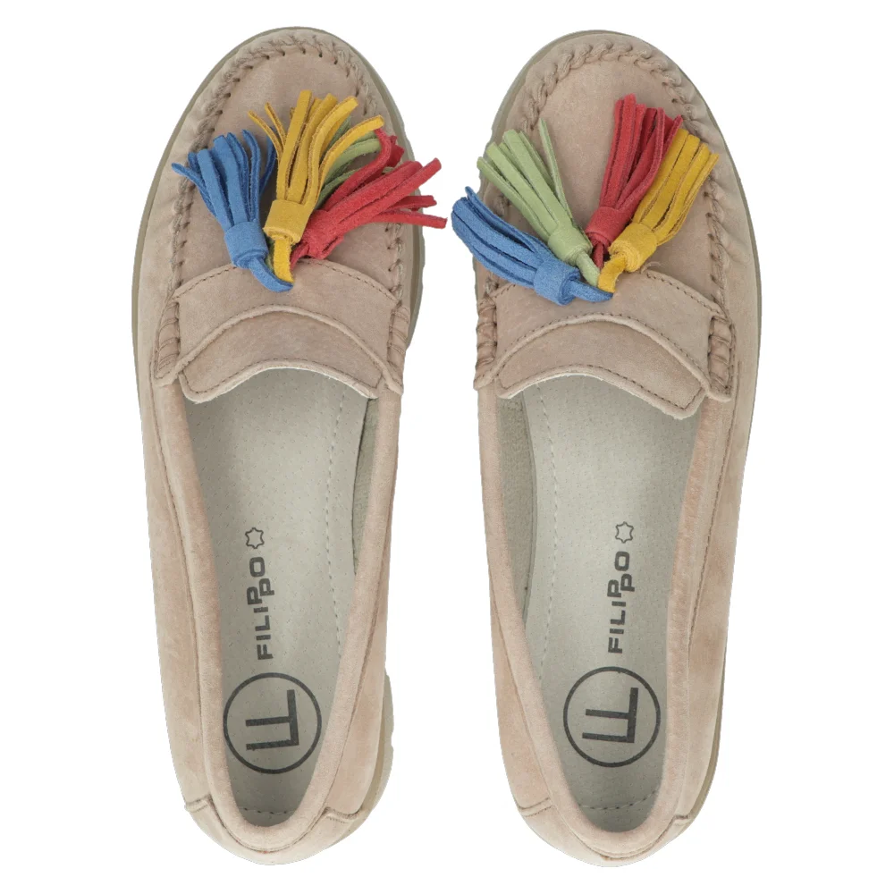 Skórzane mokasyny Filippo DP3535/24 BE beżowe