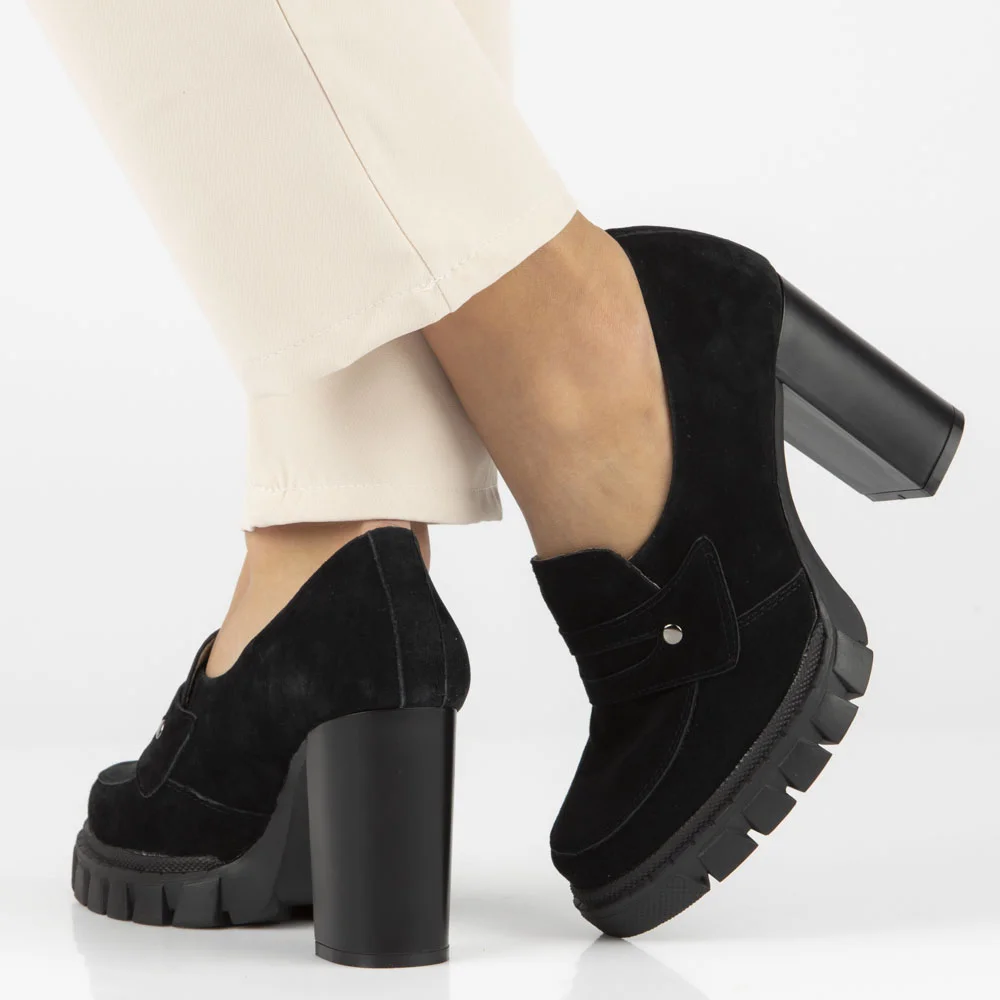 Skórzane półbuty na obcasie Filippo DP4671/24 BK czarne