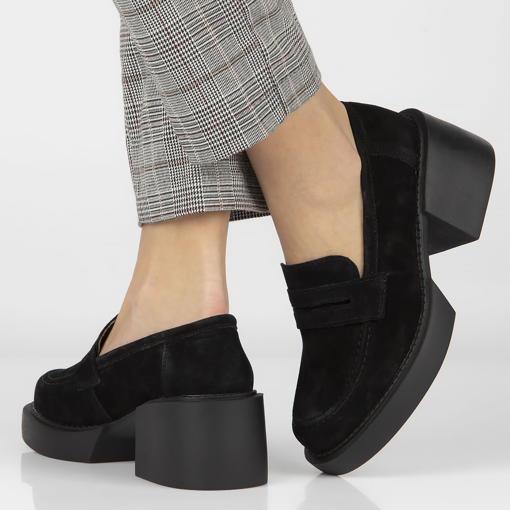 Skórzane półbuty na obcasie Filippo DP4685/23 BK czarne