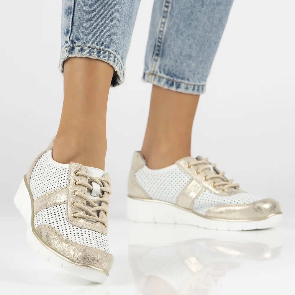 Skórzane półbuty na platformie Filippo DP028/24 WH GO biało złote