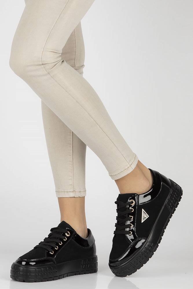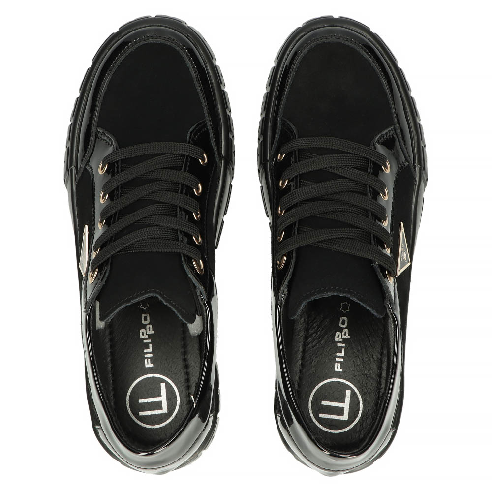 Opinie o Skórzane półbuty na platformie Filippo DP4245/23 BK czarne