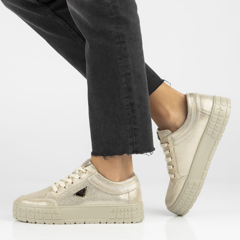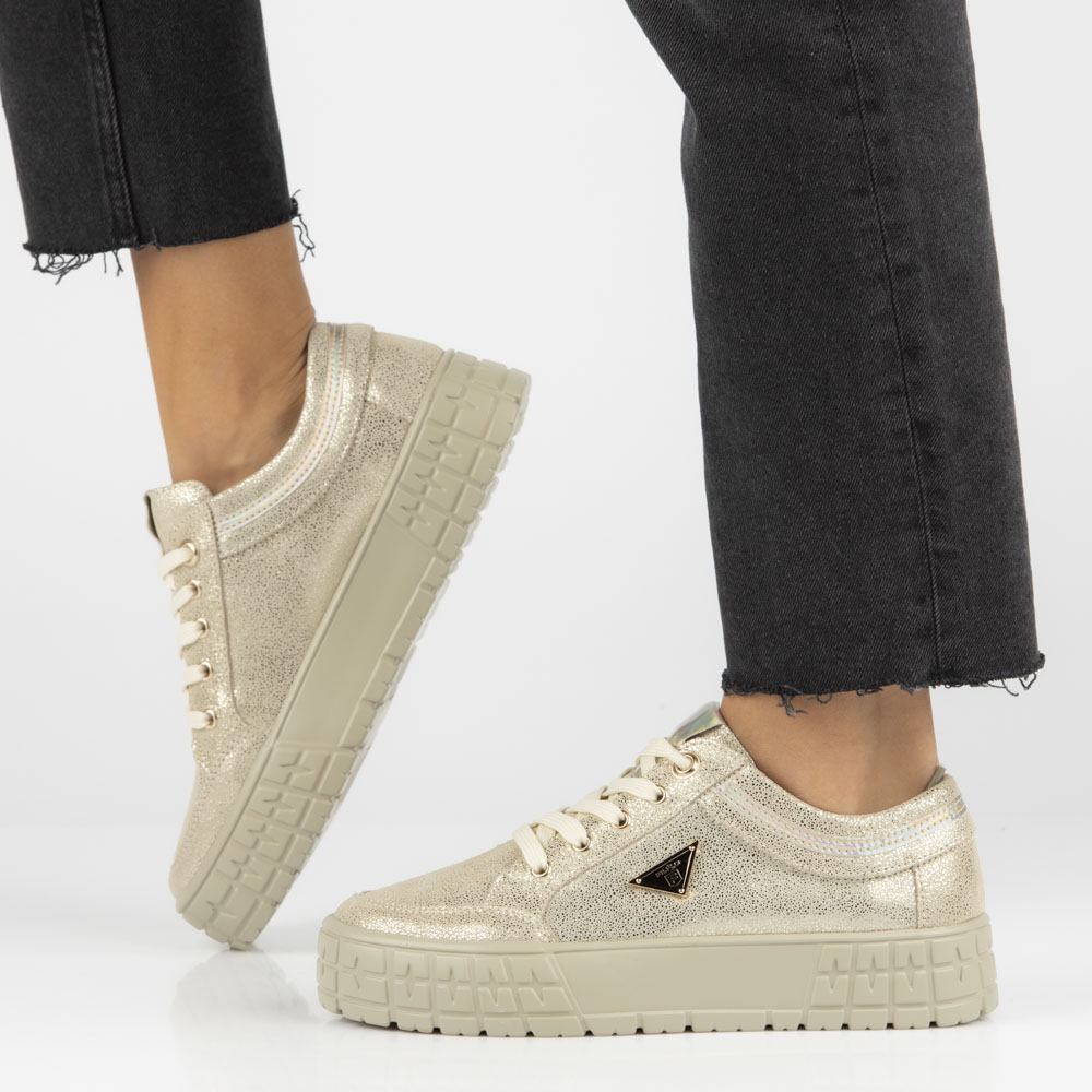Skórzane półbuty na platformie Filippo DP4245/23 GO złote