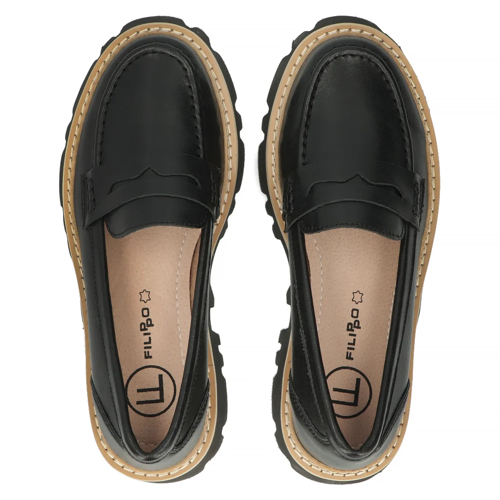 Skórzane półbuty na platformie Filippo DP6088/24 BK czarne