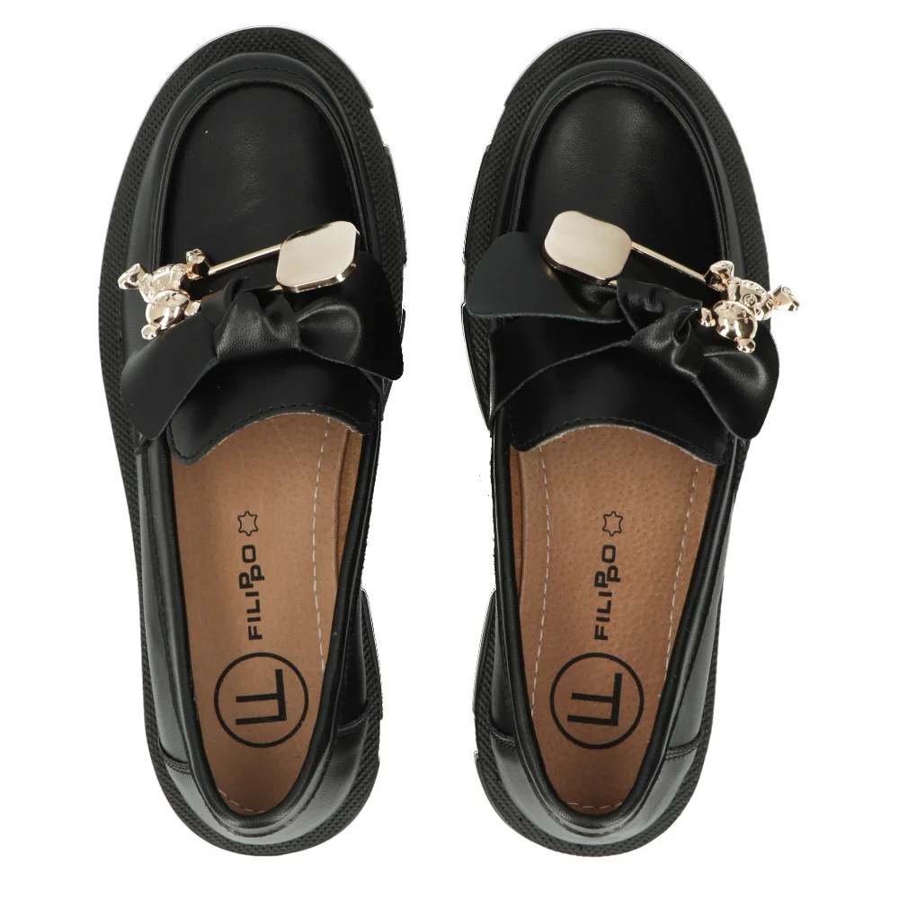 Skórzane półbuty na platformie Filippo DP6101/24 BK czarne