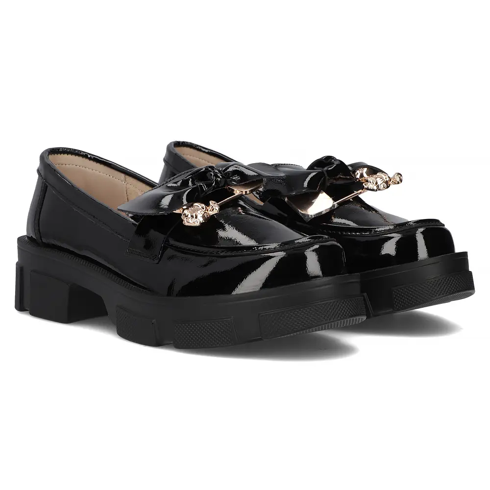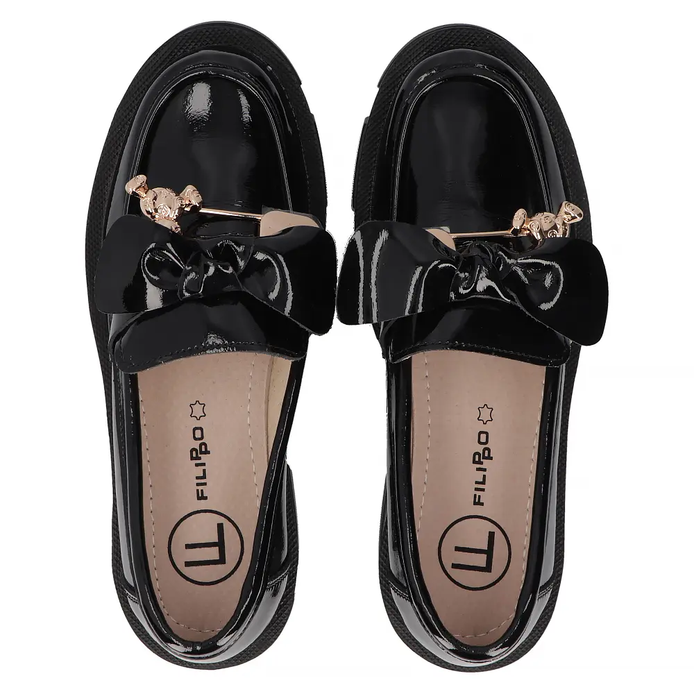Opinie o Skórzane półbuty na platformie Filippo DP6101/25 BK L czarne