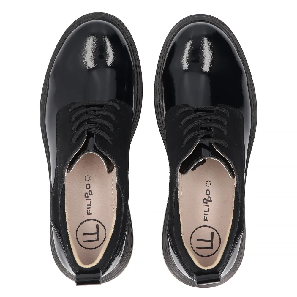 Skórzane półbuty na platformie Filippo DP6123/24 BK czarne
