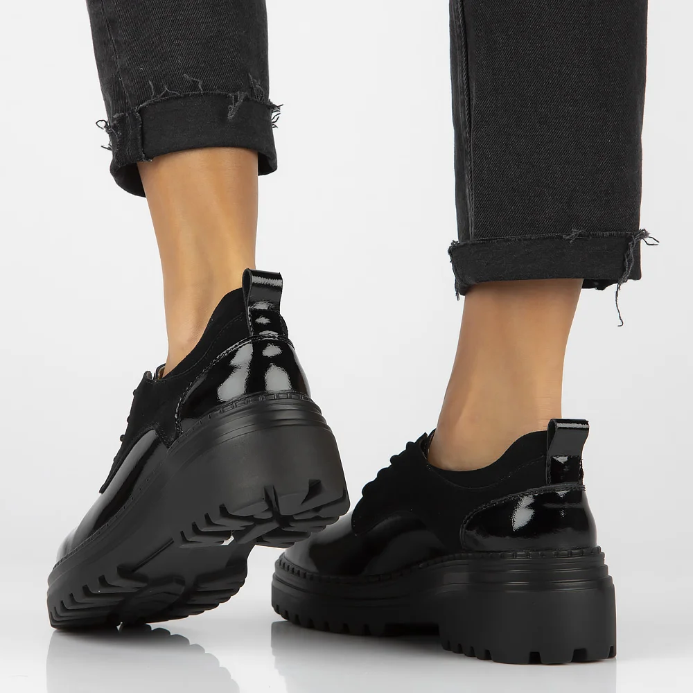 Opinie o Skórzane półbuty na platformie Filippo DP6123/24 BK czarne