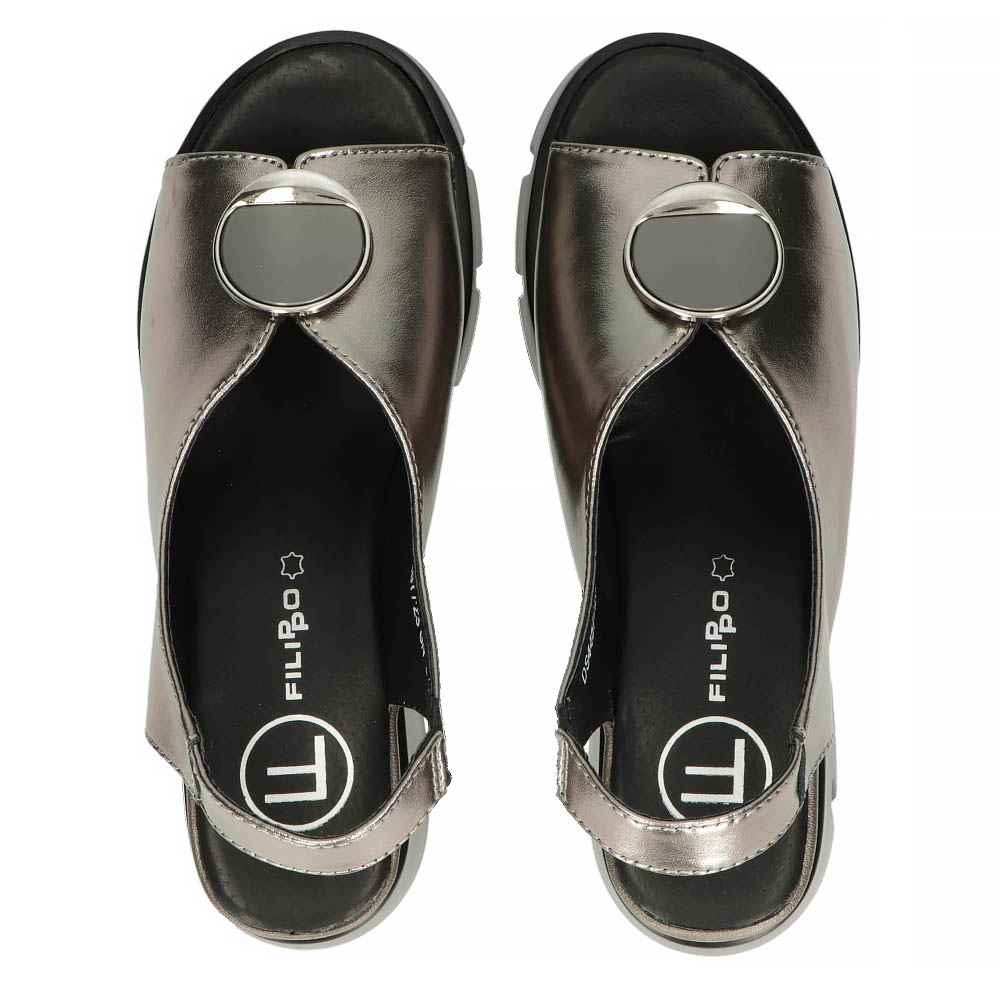 Skórzane sandały na koturnie Filippo DS4457/23 GN gunmetal