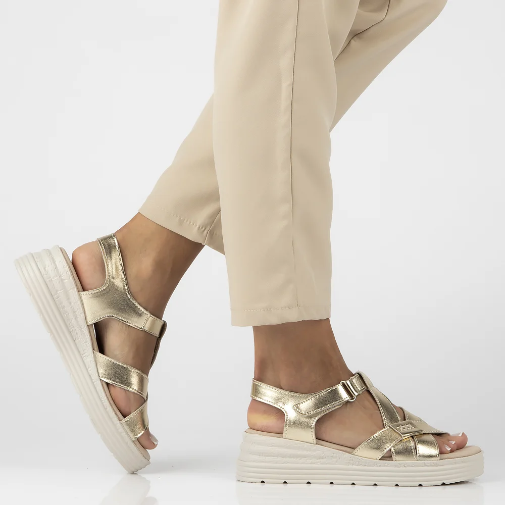Skórzane sandały na koturnie Filippo DS6709/25 GO złote
