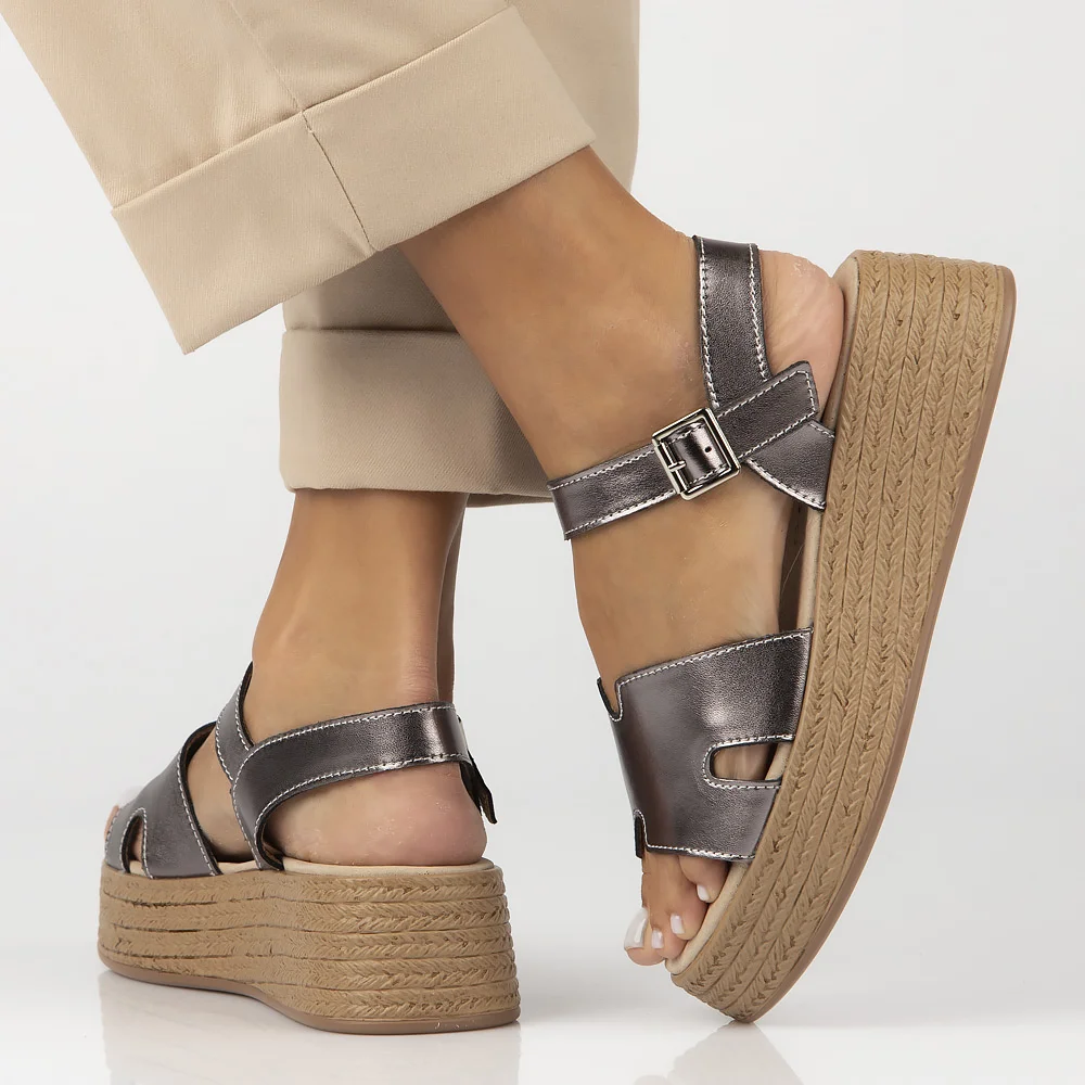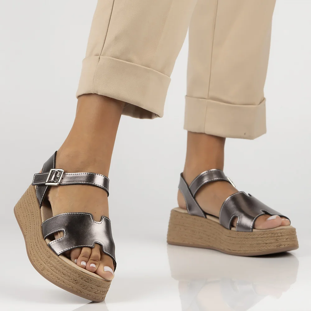 Skórzane sandały na platformie Filippo DS7024/25 GN gun metal