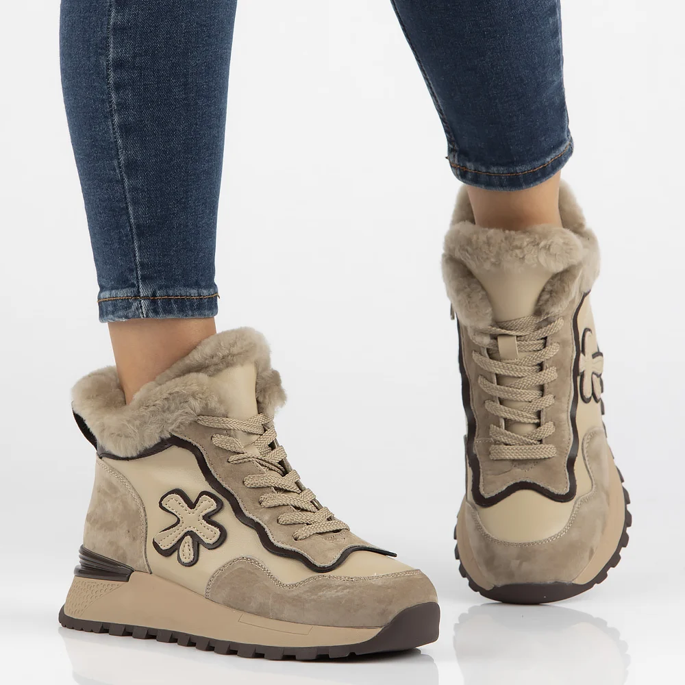 Skórzane trapery na platformie Filippo DBT6522/24 BE beżowe